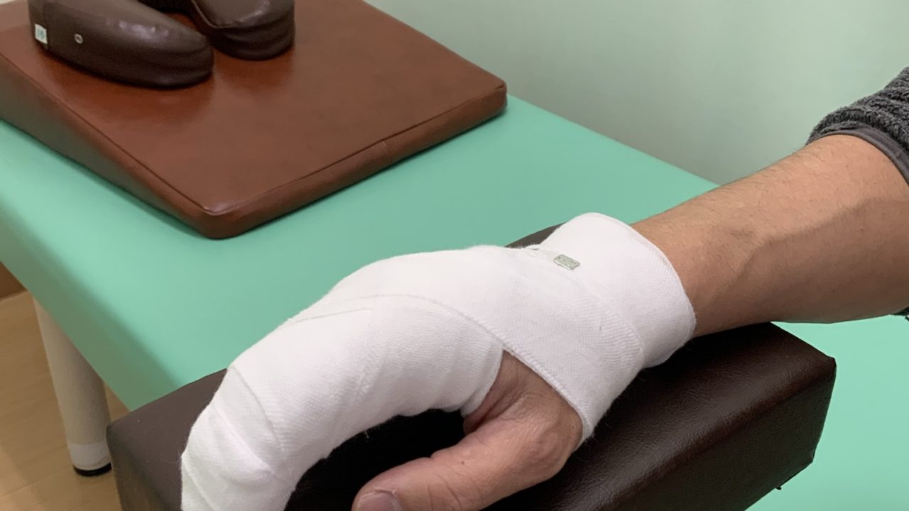 指の剥離骨折の治療で1番重要なのはしっかりした固定を行うことで、骨折した部分が動かないように指から手首まで固定を行います。