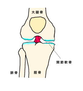 すり減った軟骨のかけらが膝関節の中にある滑膜を刺激すると炎症が起こります。