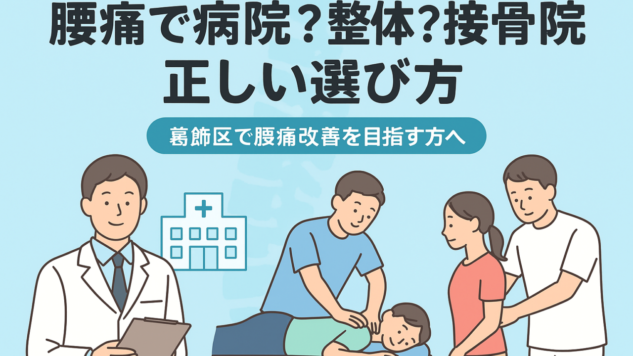 葛飾区には多くの医療機関や施術院があります。その中で「自分の腰痛のタイプに合った場所」を選ぶことが、改善への一番の近道です。