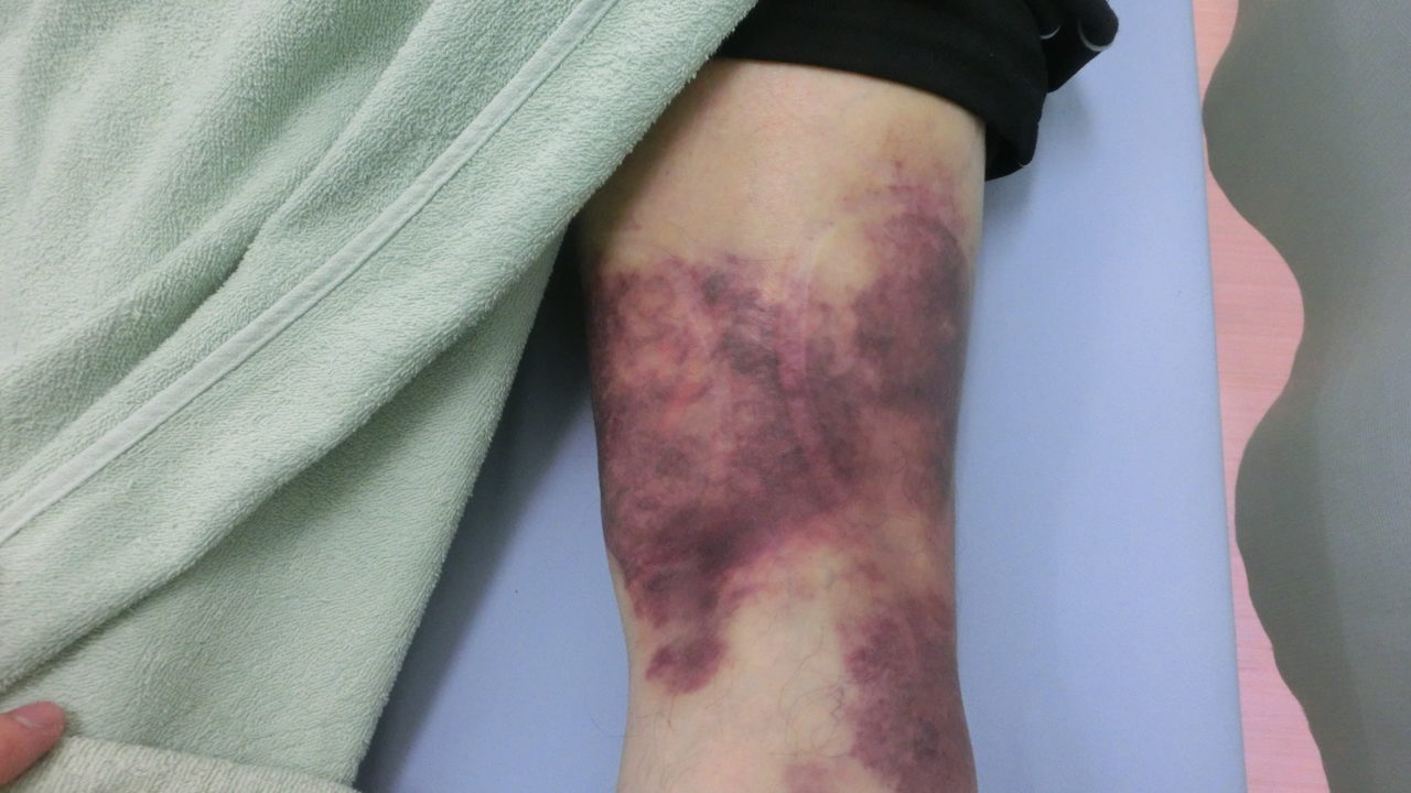 肉離れをすると損傷した筋肉から腫れや内出血などの炎症が出ます。