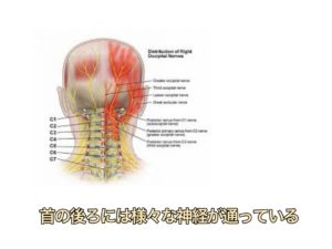 首の後ろに目や頭に向かう神経の通り道がありますが、筋肉が硬くなっていて神経の通り道を圧迫していると、目の疲れや頭痛が出るので、ピンポイントでこの神経の通り道を治療することで、目の疲れや頭痛が改善されます。